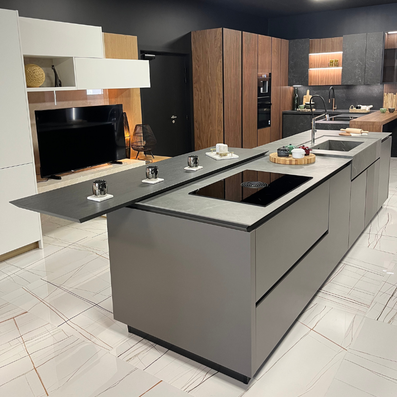 Bienvenue dans notre showroom d'exposition cuisine, où l'art de la cuisine prend vie sous vos yeux. Explorez notre espace inspirant et découvrez une gamme impressionnante de cuisines conçues pour répondre à tous les besoins, tous les goûts et toutes les envies.